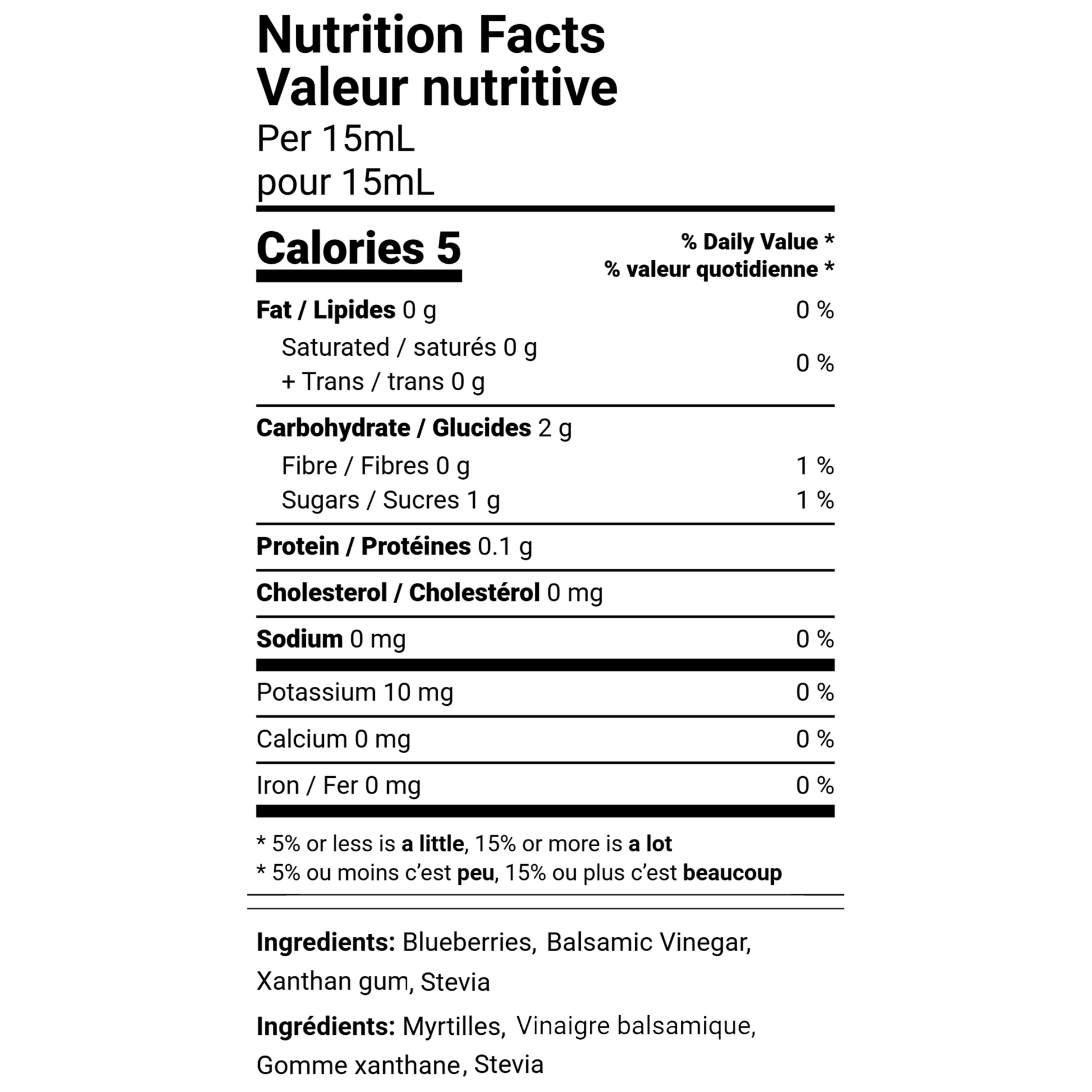 Blueberries, Balsamic Vinegar, Xanthan Gum, Stevia.
