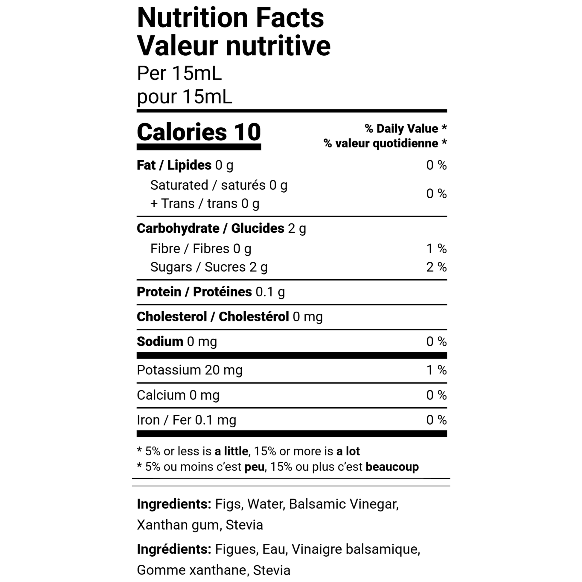 Figs, Water, Balsamic Vinegar, Xanthan Gum, Stevia.