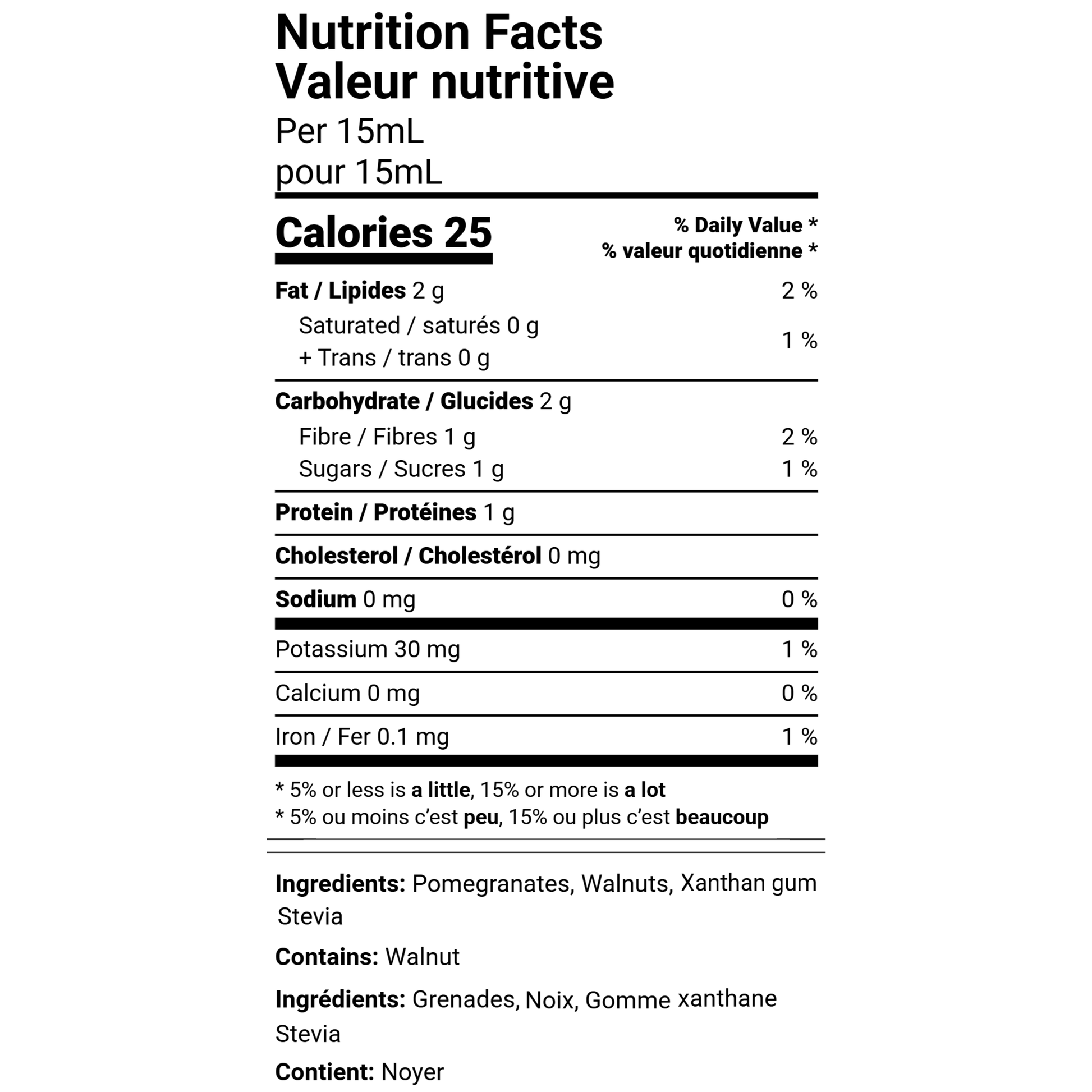 Pomegranate Juice, Walnuts, Xanthan Gum, Stevia.