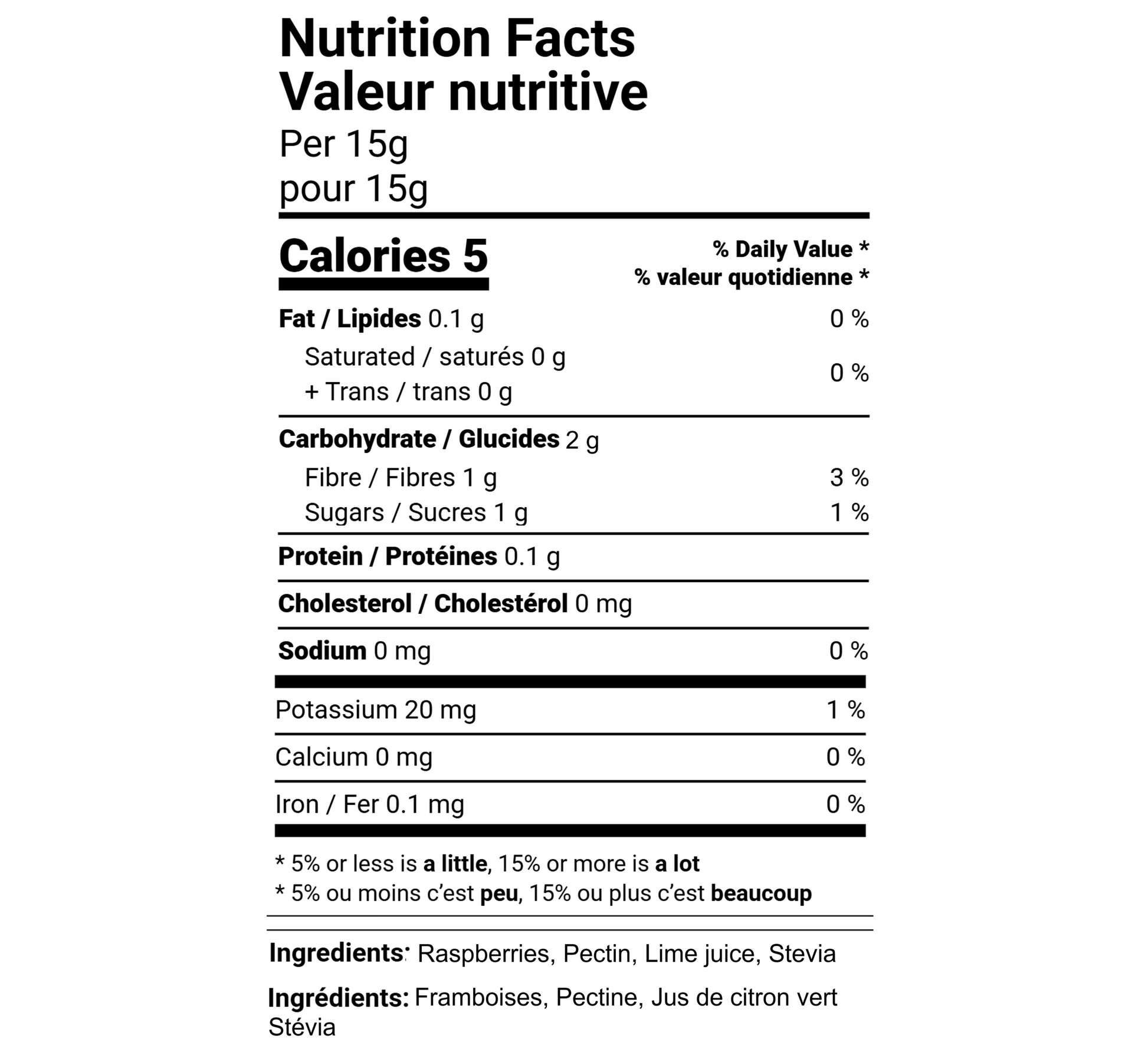 Raspberries, Pectin, Lime Juice, Stevia.