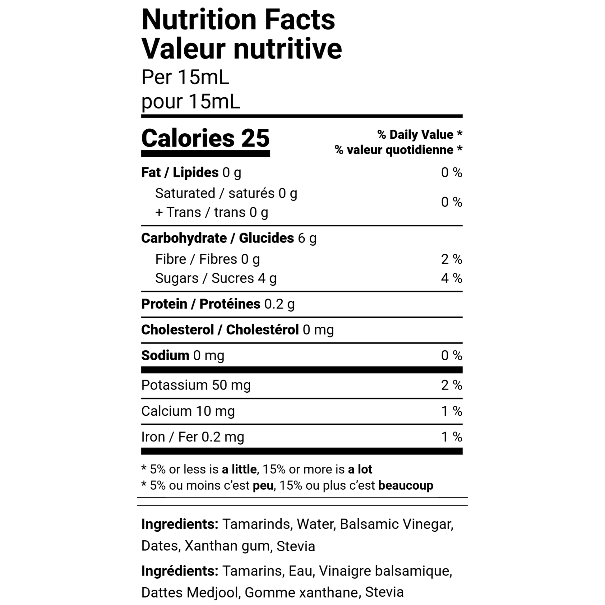 Tamarinds, Date Vinegar, Dates, Xanthan Gum, Stevia.